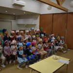 2月のお誕生児7名のお誕生会を行いました。 先生から誕生カードをもらったお子さま達はとても嬉しそうでした。 そのあと先生からのプレゼントでパネルシアターの披露がありました。