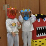 節分の会を行いました。 各クラスから代表者が出てきて、節分製作を披露してくれました。 節分の話を聞いた後、扉の向こうから現れた『おにじろうくん』にみんな大笑い。 豆に見立てたボールをおにじろうくんの口に投げ入れて、「鬼は […]