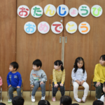 3月は誕生児1名での誕生会となりました。 先生から誕生カードをもらい嬉しそうでした。 先生たちからのプレゼントでおゆうぎ会メドレーを披露しました。 リトミックを披露すると、お子様たちも一緒にやってくれて大盛り上がりでした […]