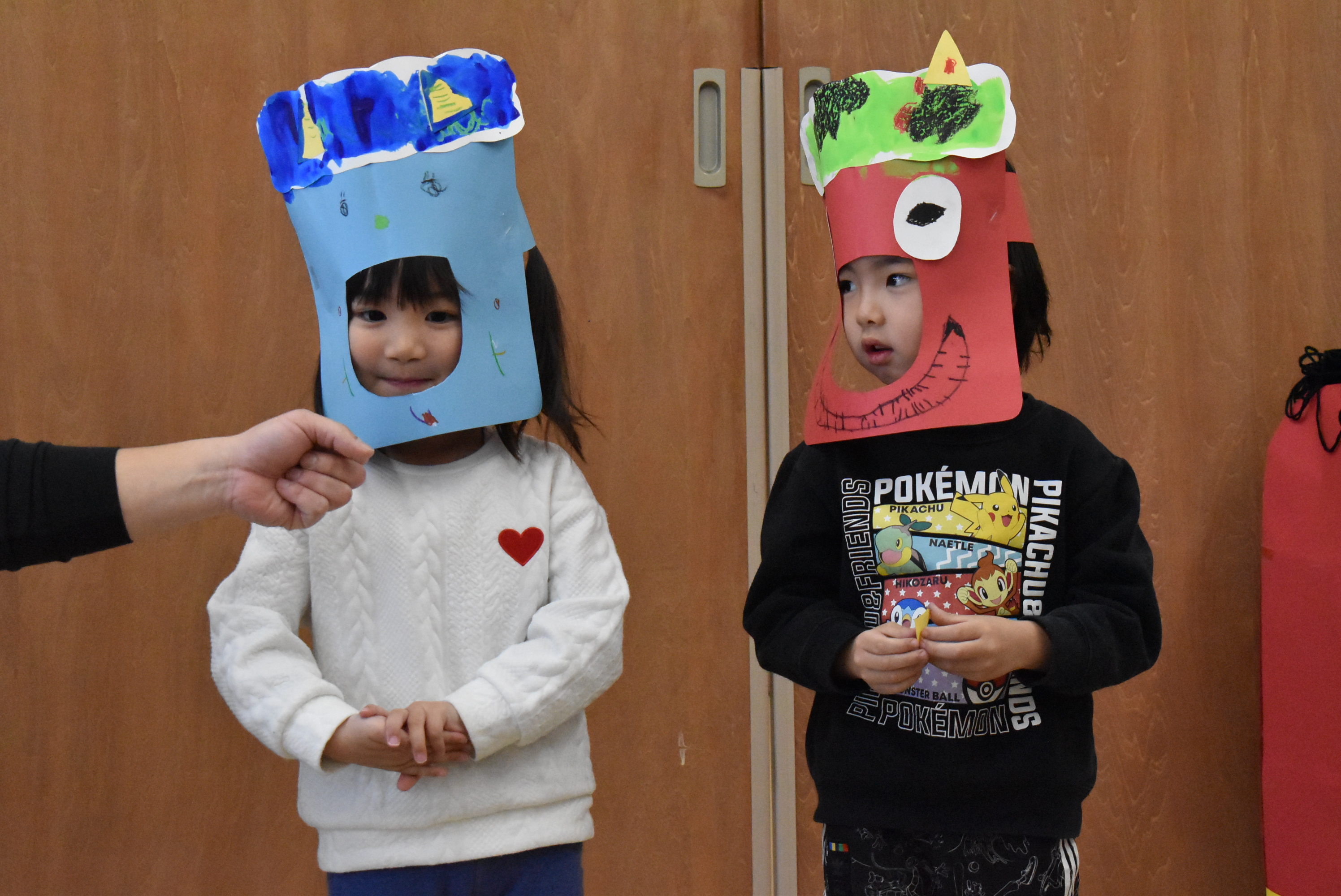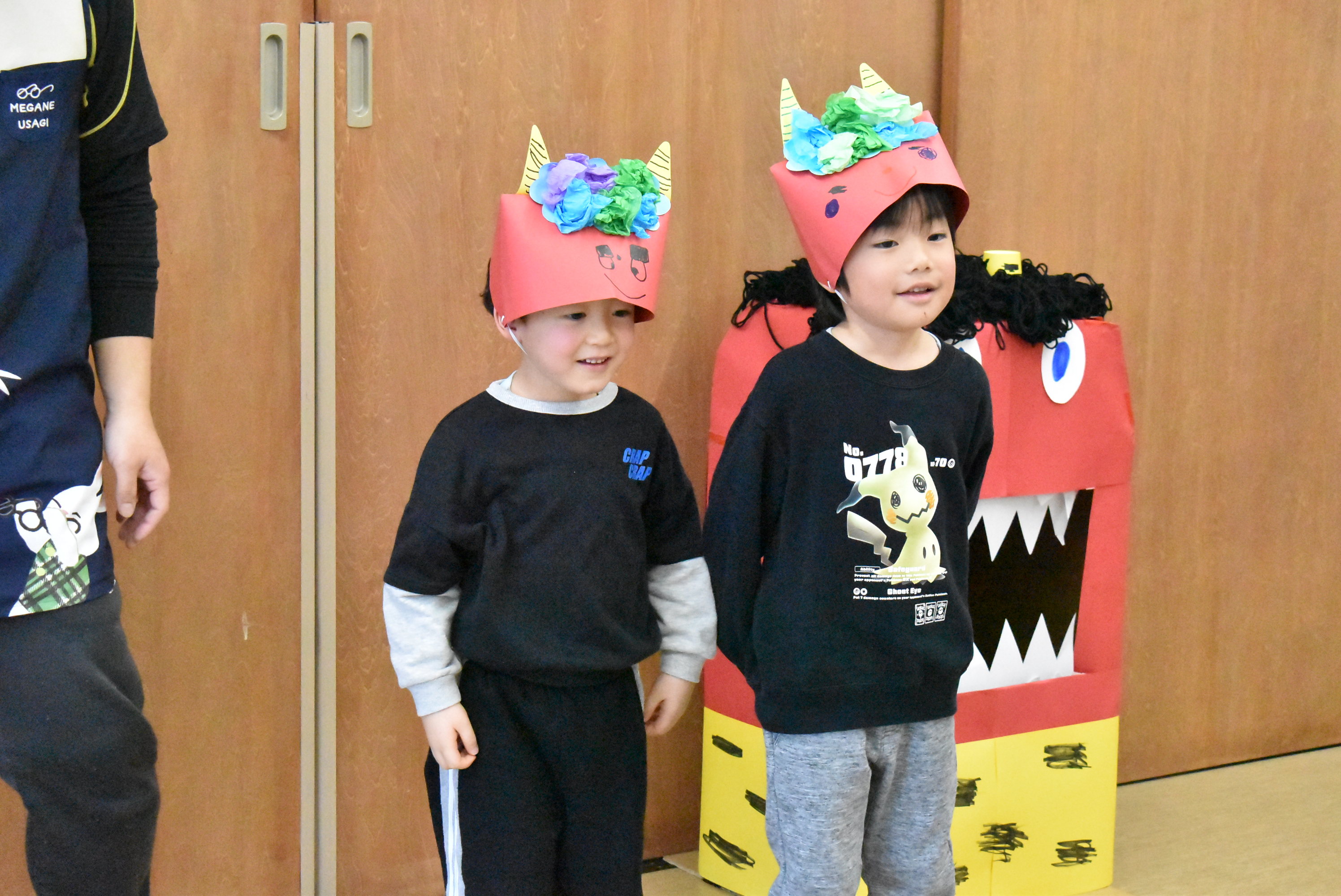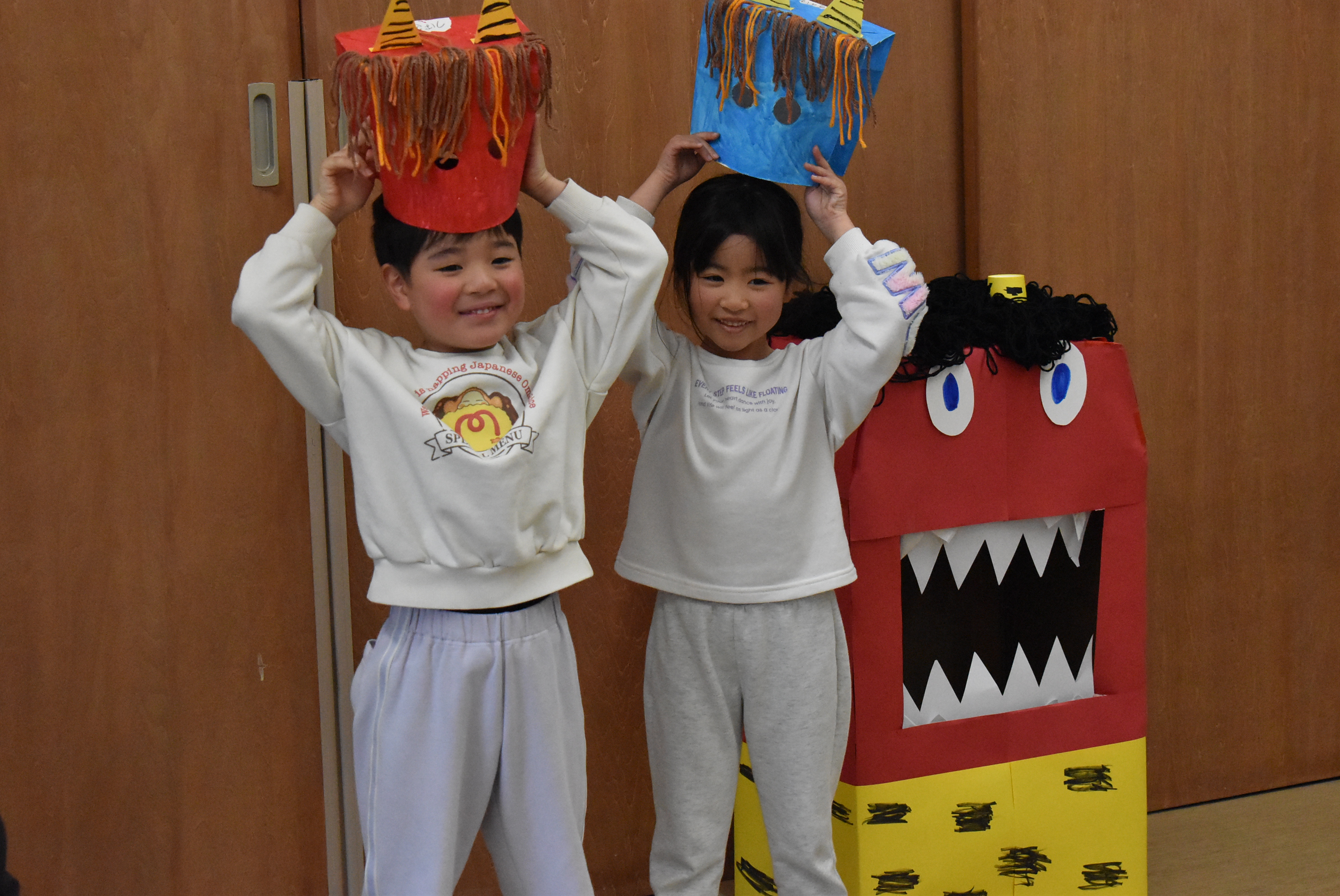 各クラスから代表者が出てきて、節分製作を披露してくれました。