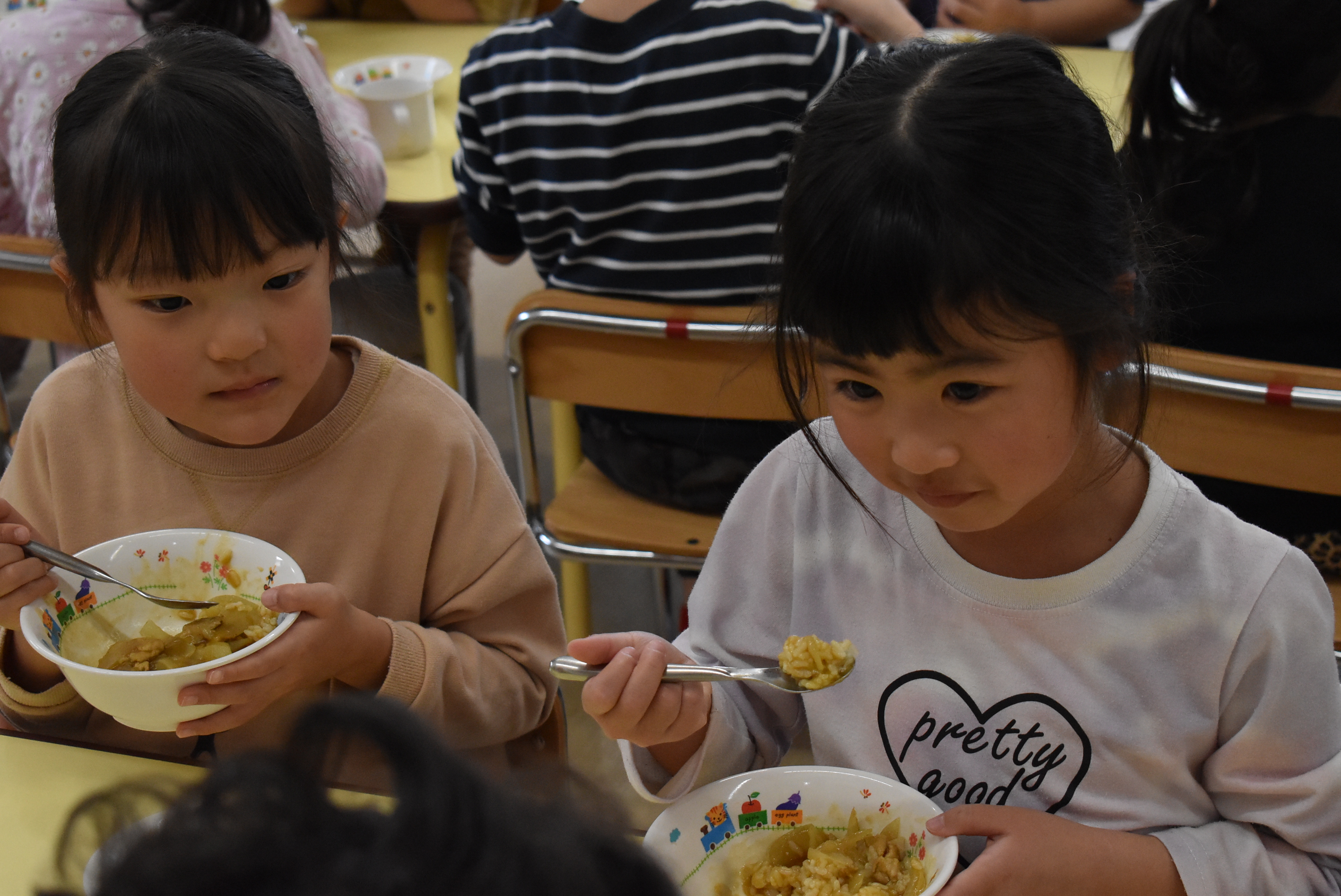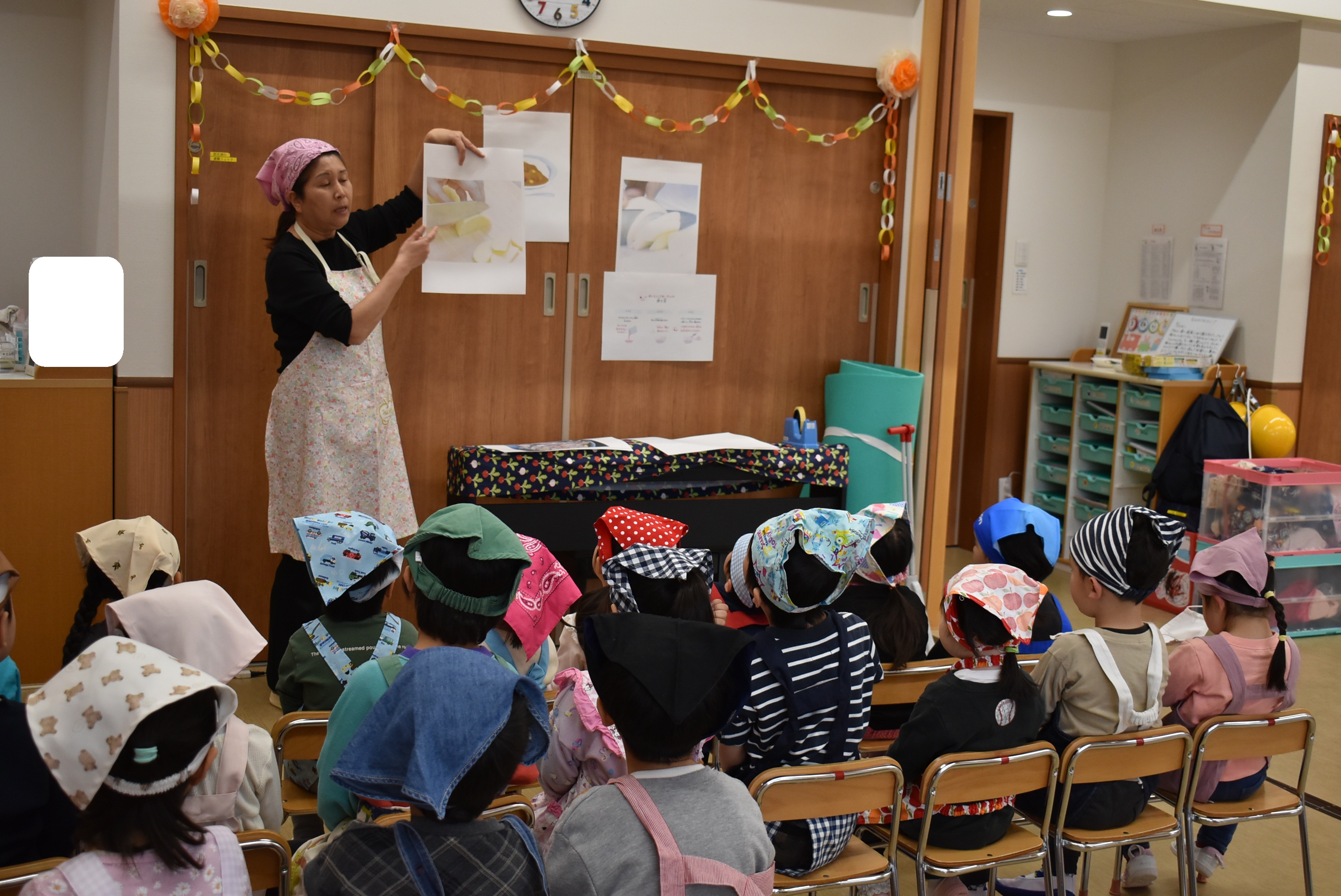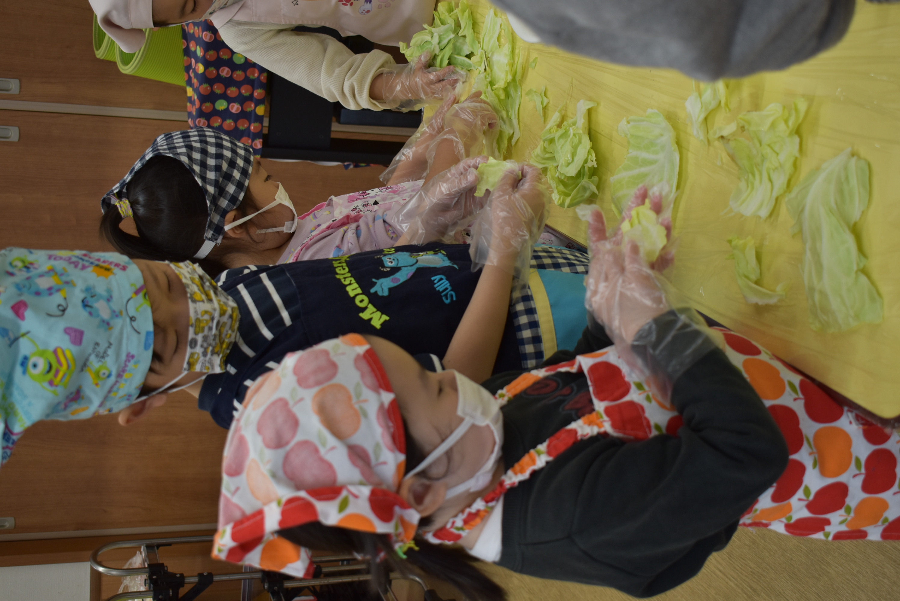 3月の食育活動は、おひさま組のお子様たちが食べたいメニューをみんなで作って食べる「リクエスト給食」を行いました。